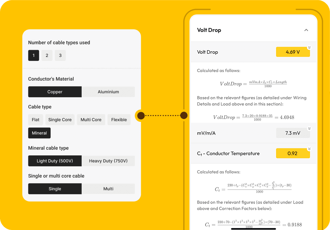Sparky simplifies the circuit design process, removing the the need to perform complex calculations and look up figures in tables. Simply input the variables and Sparky will do the rest for you.
